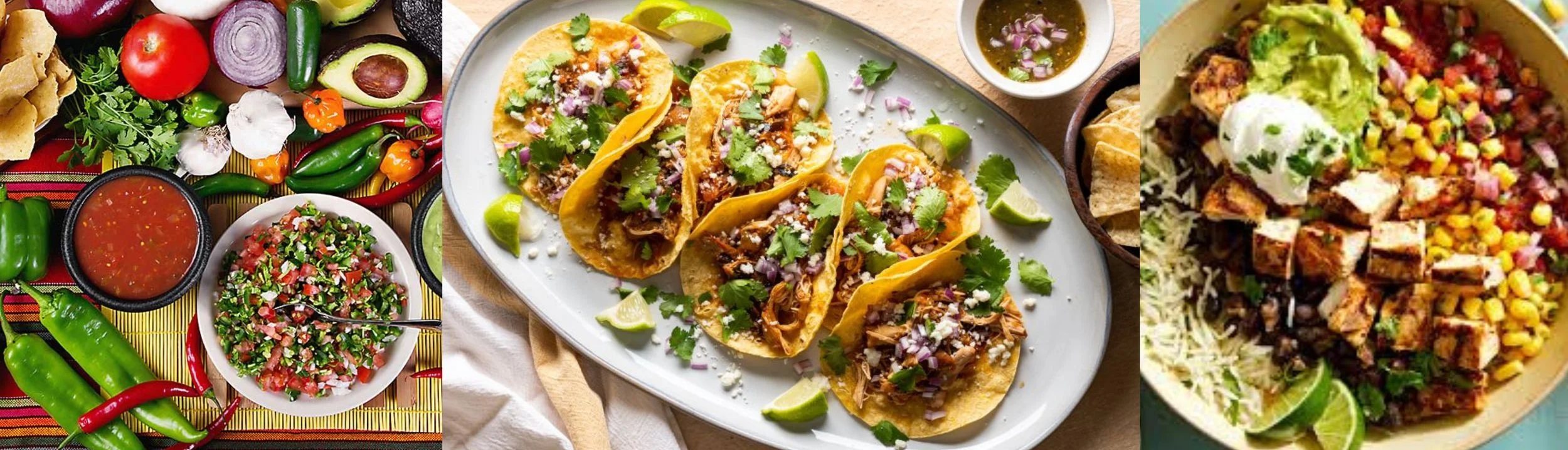 Tacos with your choice of grilled chicken, premium beef, sautéed beans, or pan-fried fish